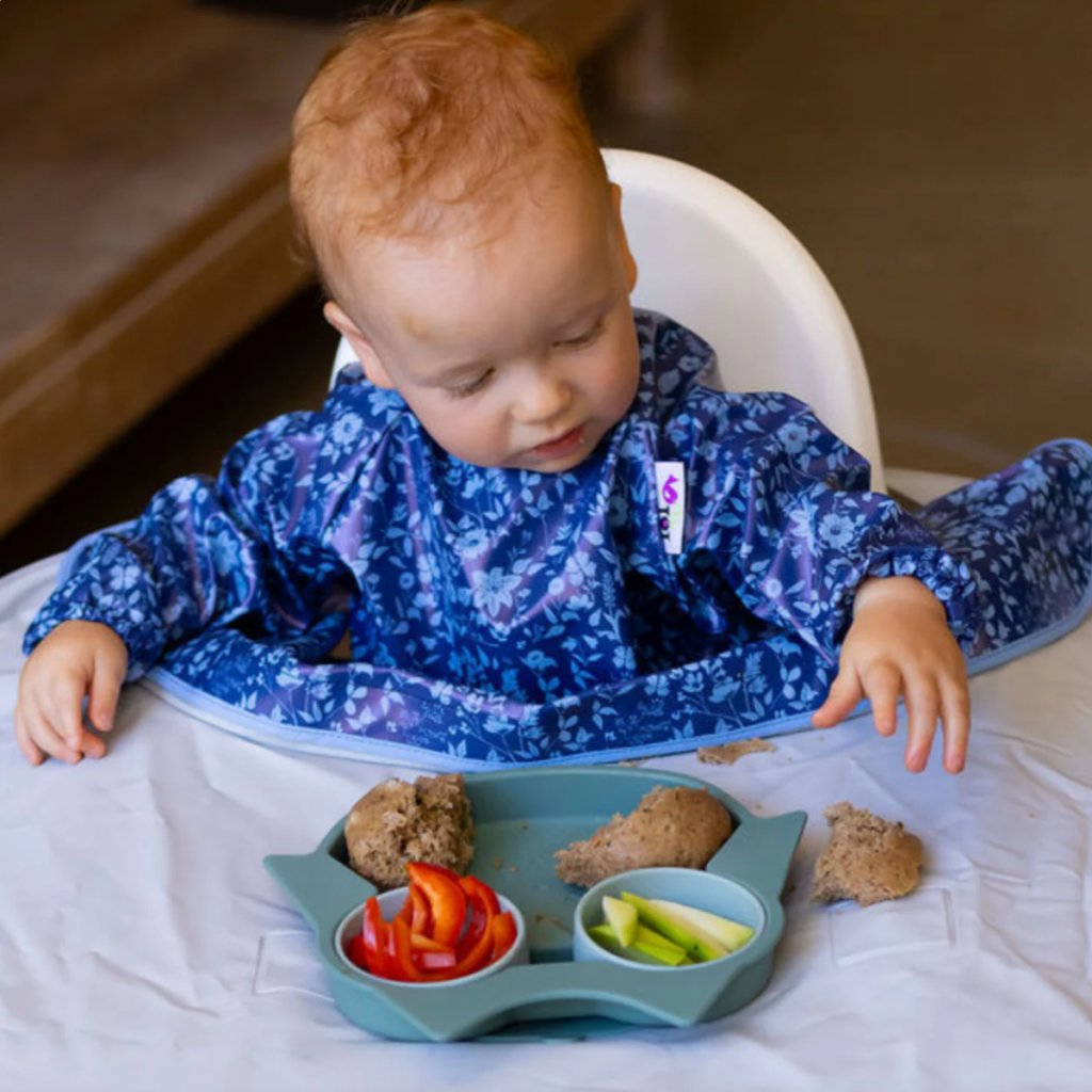 Tento bryndák s dlouhým rukávem lze používat samostatně nebo ho využít jako náhradní bryndák k Vašem pultíku Tidy Tot pro maximální ochranu při stolování. Tento bryndák díky svému designu chrání oblečení vašeho dítěte před ušpiněním od jídla.