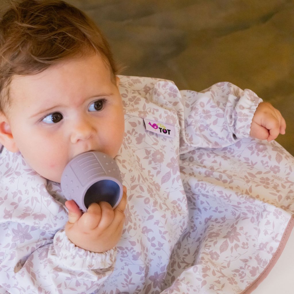 Bryndák s přísavkami Tidy Tot Cover & Catch dlouhý rukáv - Fleur de Jardin Rose