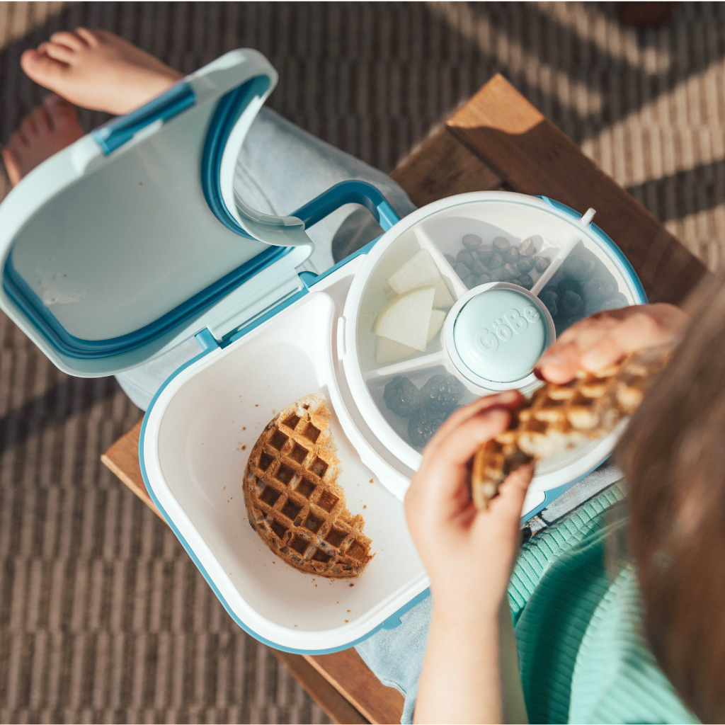 GoBe Lunchbox se dodává spolu s předem sladěným Snack Spinnerem, ale jeho vyměnitelný design vám umožňuje kombinovat barvy podle nálady nebo stylu vašeho dítěte. Děti milují výběr – a vy si zamilujete, jak snadno jim můžete každý den připravit pestré a lákavé jídlo.
