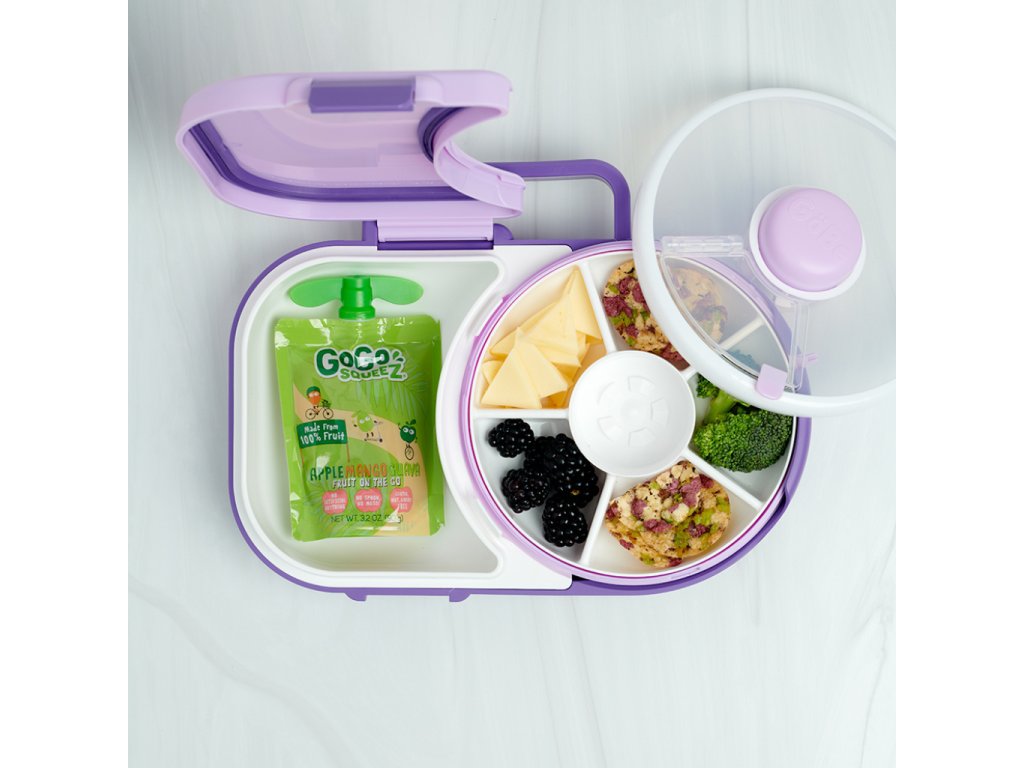 GoBe Lunchbox se dodává spolu s předem sladěným Snack Spinnerem, ale jeho vyměnitelný design vám umožňuje kombinovat barvy podle nálady nebo stylu vašeho dítěte. Děti milují výběr – a vy si zamilujete, jak snadno jim můžete každý den připravit pestré a lákavé jídlo.