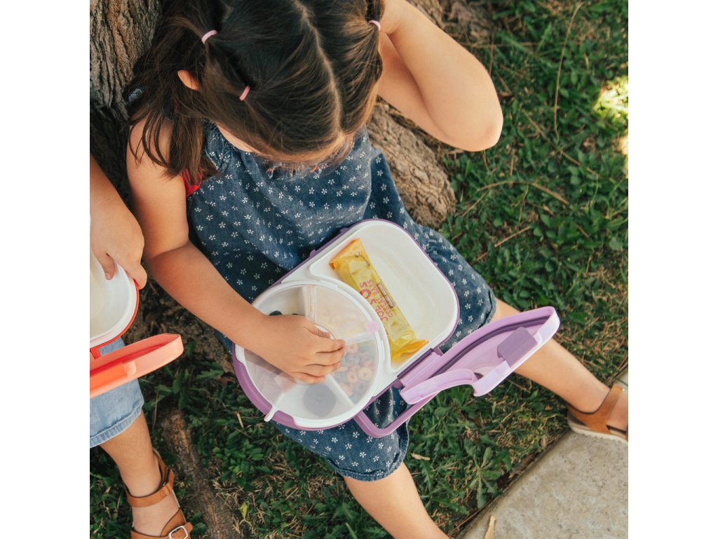 Dětský lunchbox 2v1 – velká přihrádka + Snack Spinner s 5 oddíly