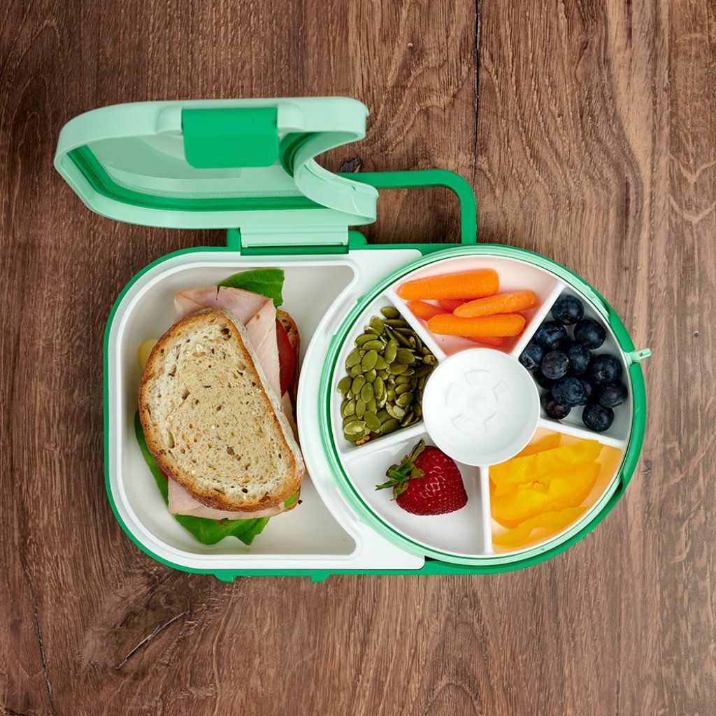 Dětský lunchbox 2v1 – velká přihrádka + Snack Spinner s 5 oddíly