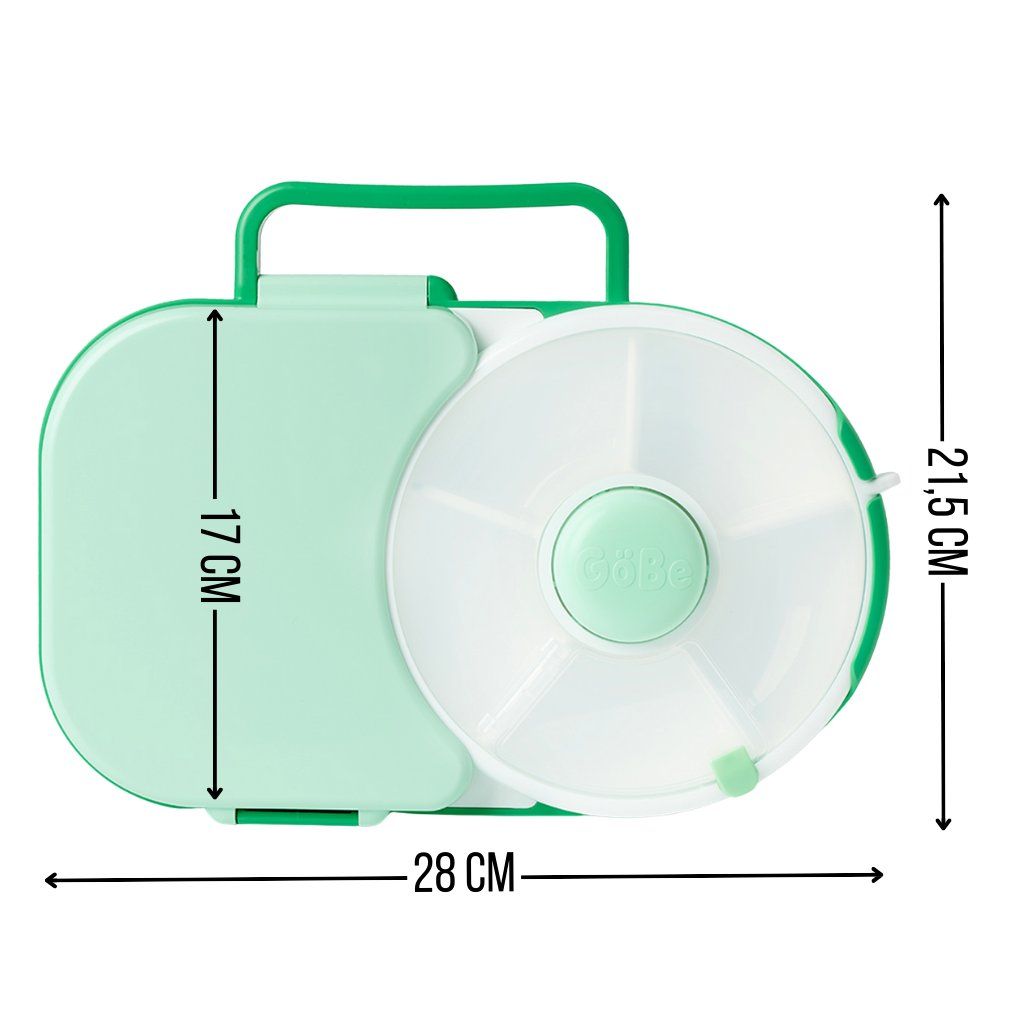 GoBe Lunchbox se dodává spolu s předem sladěným Snack Spinnerem, ale jeho vyměnitelný design vám umožňuje kombinovat barvy podle nálady nebo stylu vašeho dítěte. Děti milují výběr – a vy si zamilujete, jak snadno jim můžete každý den připravit pestré a lákavé jídlo.