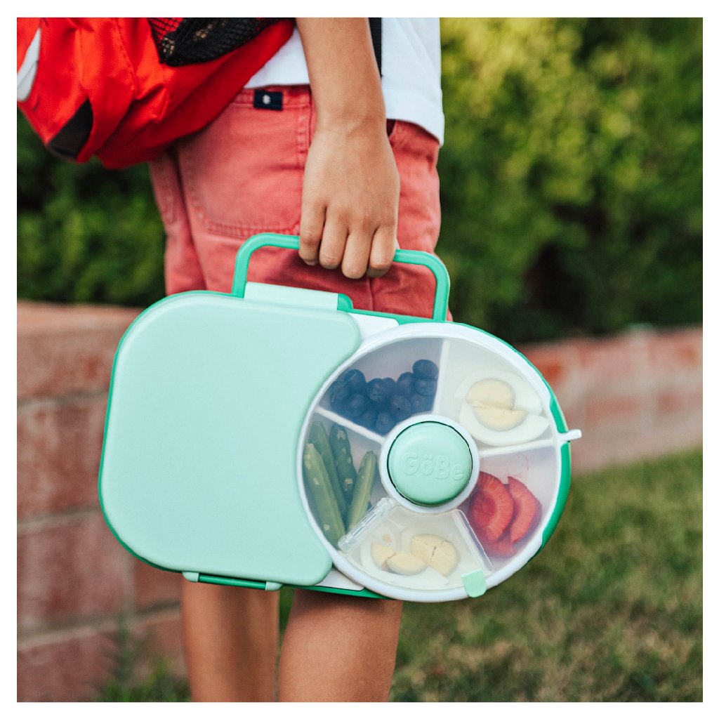 GoBe Lunchbox se dodává spolu s předem sladěným Snack Spinnerem, ale jeho vyměnitelný design vám umožňuje kombinovat barvy podle nálady nebo stylu vašeho dítěte. Děti milují výběr – a vy si zamilujete, jak snadno jim můžete každý den připravit pestré a lákavé jídlo.