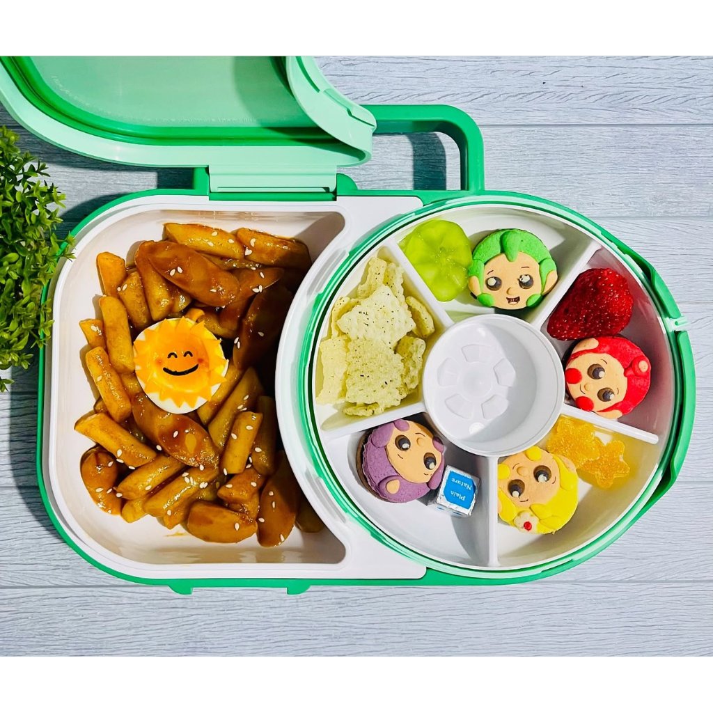 Dětský lunchbox 2v1 – velká přihrádka + Snack Spinner s 5 oddíly