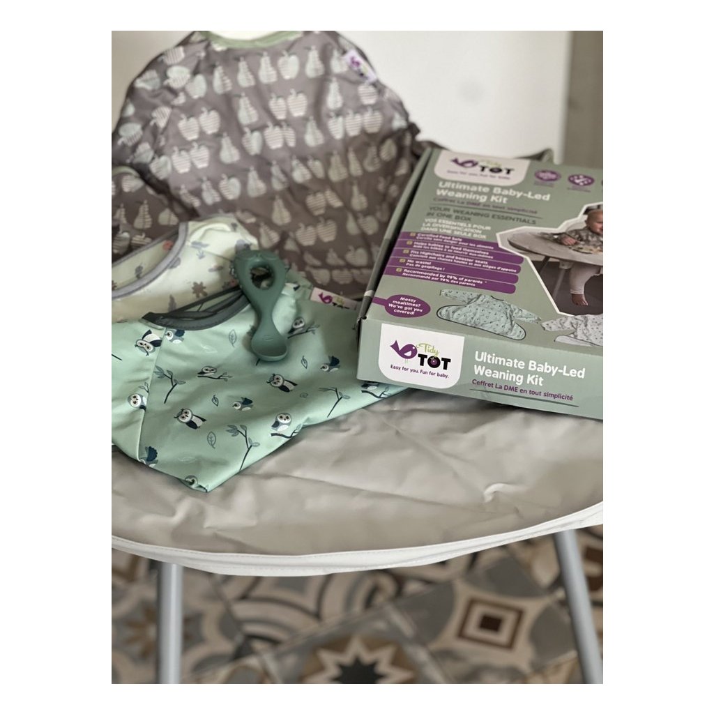 Ocěňovaná Sada bryndáku s pultíkem Tidy Tot nyní přichází v praktickém balíčku se vším, co potřebujete pro bezstarostné začátky s příkrmy.
