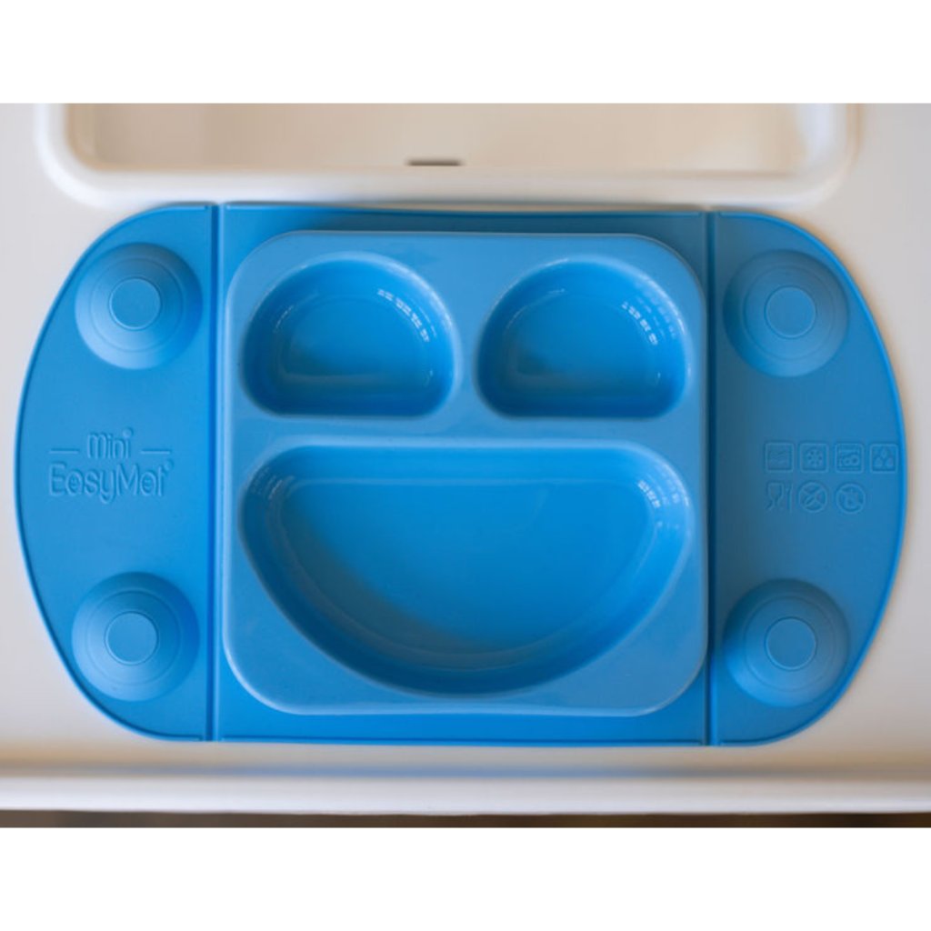 Silikonový talíř Easy Mat je navržený tak, aby při jídle neklouzal a dítě ho nemohlo shodit ze stolu. Díky 5 výkonným přísavkám pevně drží téměř na všech hladkých površích – na jídelní židličce, pultíku i stole. Děti tak mohou trénovat samostatné jezení bez zbytečného nepořádku.